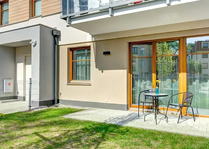 Situado en el distrito Karlikowo, Bentley Home Sopot incluye una terraza y vistas al patio. El Pabellón de deportes Sopot-Gdansk está a aproximadamente 900 metros, mientras que el aeropuerto Gdańsk-Lech Wałęsa está a 30 minutos en coche de este apartamento frente a la playa de 40 m^2.